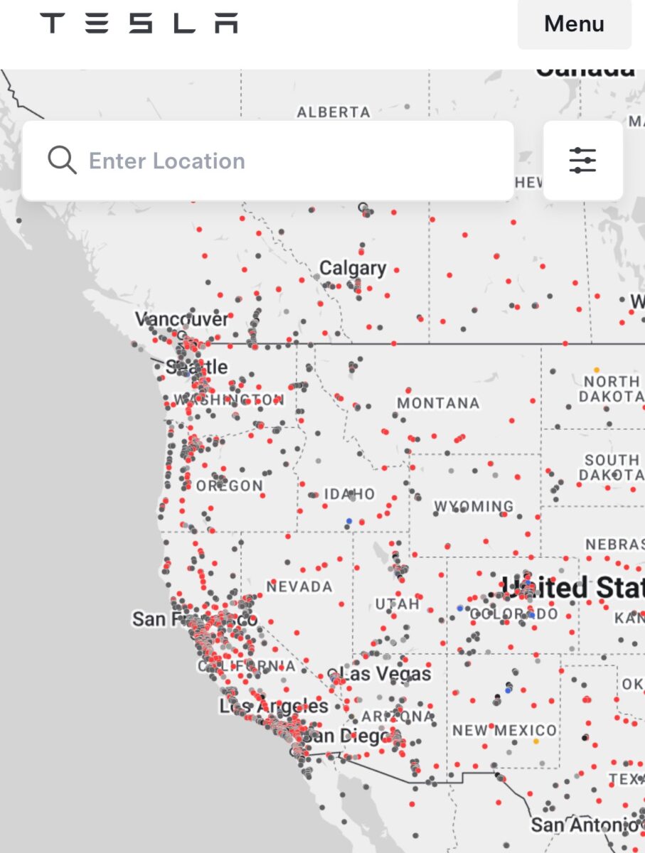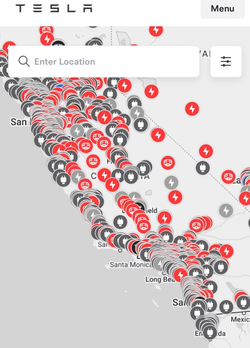 Tesla has built its own network, with 60,000+ Superchargers worldwide. If you look at their map, they are all along I5 with a mass of locator dots in San Francisco, Los Angeles, and San Diego. (see screenshots of the Tesla website below).