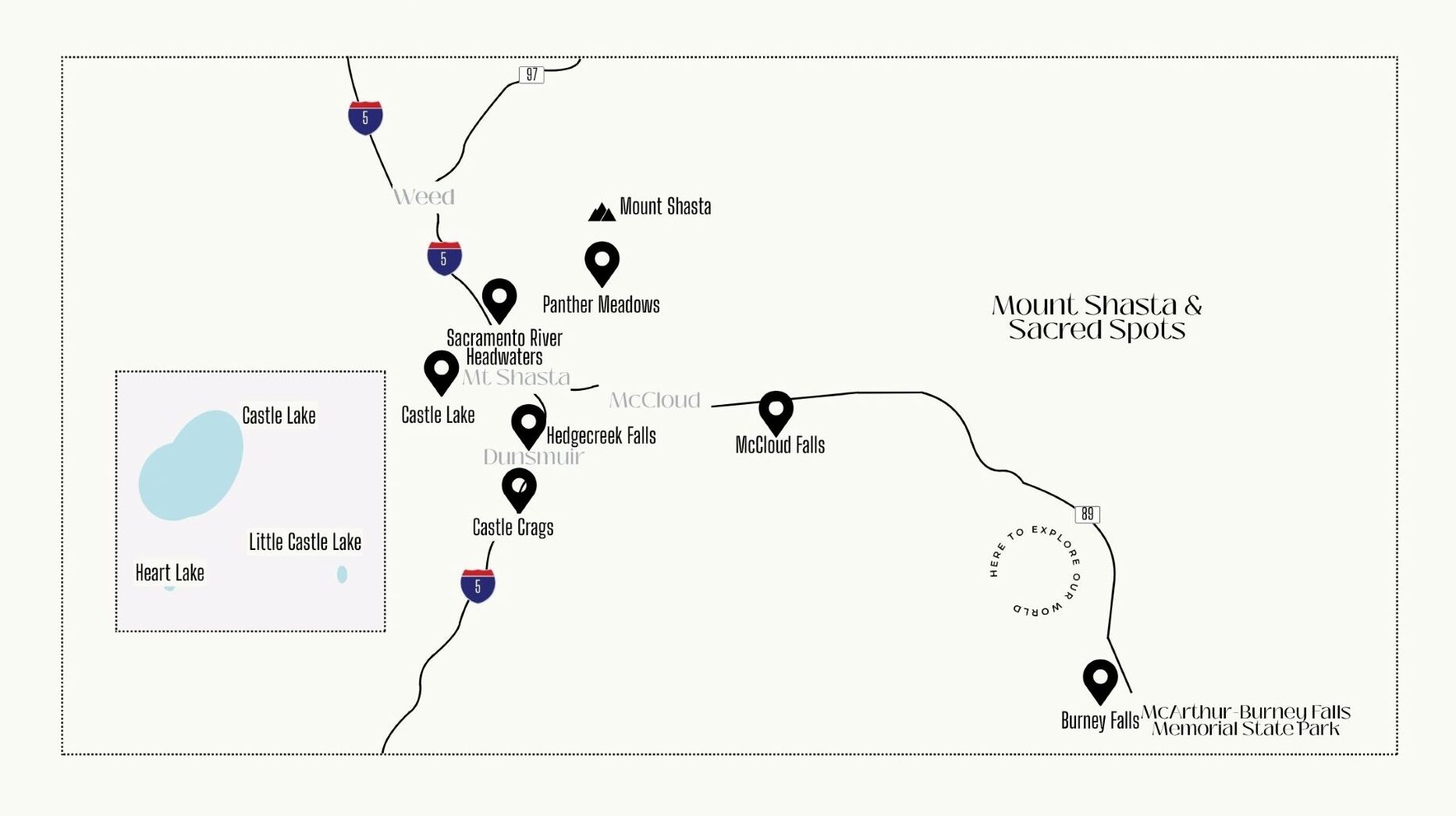 McCloud Falls – Lower, Middle, and Upper – is sacred ground. Each is known for a different energetic vibration. The Upper McCloud Falls Trail takes you to all three falls though each has its own parking lot.