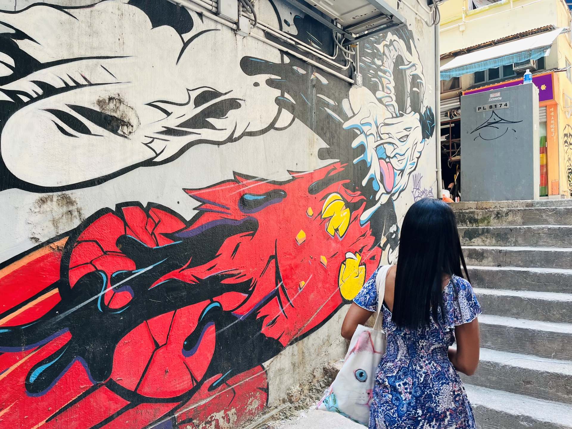 It was full of tourists when we visited Man Mo Temple. Coils of incense hang from above, the smoke calling the gods. Some visitors were lingering to wait for crowds to move on to capture their own Instagram moments. People were also lining up to deposit cash for incense as an offering.