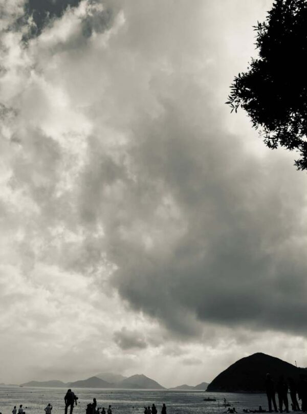 On a somewhat overcast day, I headed to Repulse Bay with family. My sister and I took the bus, empty and air-conditioned. We met my brother, sister-in-law, and niece there. After setting up under a tree with blankets and snacks they prepared, I looked around at the beach scene. I’ve never swam in Hong Kong that was not a pool. I’ve taken my dogs to many beaches, where they enjoyed being in the water. So it was strange being at a beach.