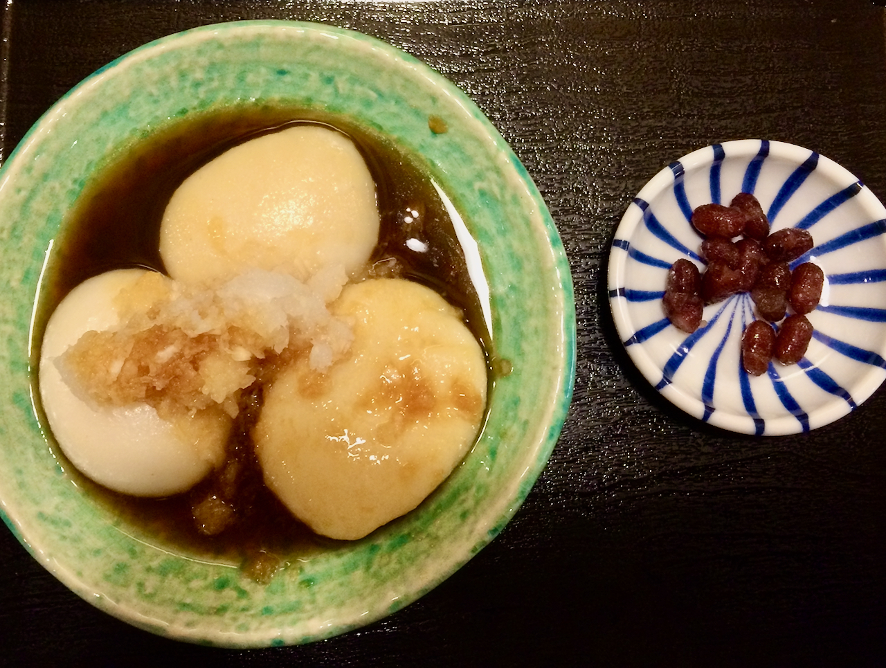 There is so, so much at the market and it can seem daunting, especially if you’re new to Japanese food and snacks. I have my own favourites, like mochi. I also love senbei rice crackers. Usually we get the crispy kind that’s baked with soya sauce. At Nishiki Market, you can try a different kind – soft rice crackers. Instead of dipping the mochi dough in the sauce before being cooked, for this kind, it’s done afterwards. This softens the cracker, giving it a soft centre. TerakoyaHonpo sells both these soft variety and rice dumplings or dango. For soy donuts, head to Konnamonja.