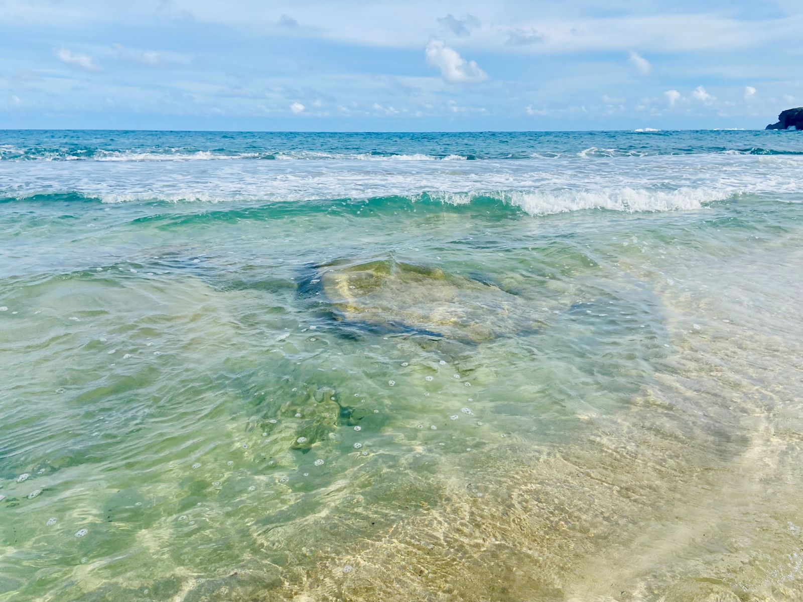 There are also secluded beaches along the trail that you can stop at. Some more private than others. Earlier, I did just that. I found my way to a cove. Every chance I get to be barefoot and get in the water…
